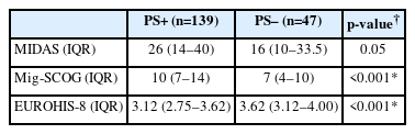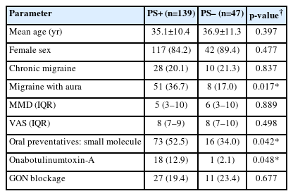 Comparison of the PS+ and PS– groups in terms of migraine trigger factors