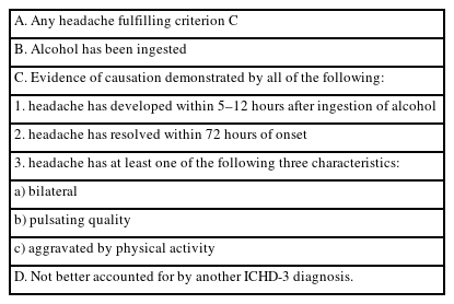 | 2. headache has resolved within 72 hours after alcohol ingestion has ceased |