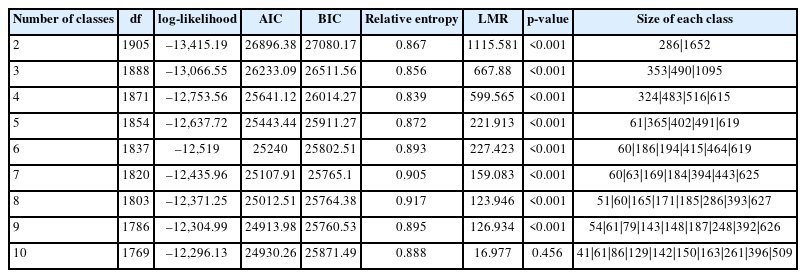 6. Statistical analysis and latent class analysis modeling